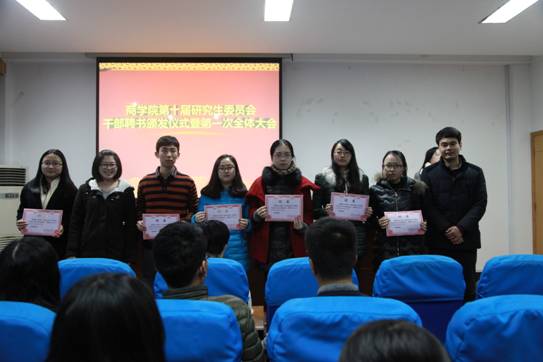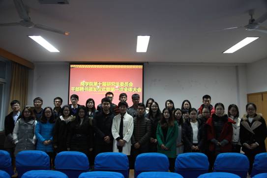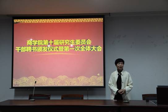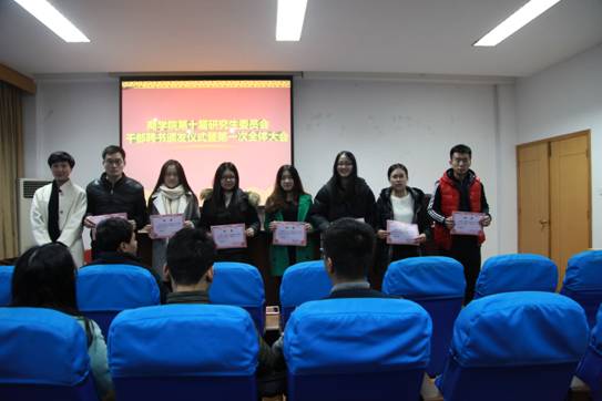 12月23日下午,糖心视频 第十届研究生委员会干部聘书颁发仪式暨第一次全体大会在糖心视频 414室举行。院党委副书记邵丽、院第十届研究生委员会秘书长陈彬、院第十届研究生委员会主席团成员、各部门正副部长及部长助理出席本次活动。