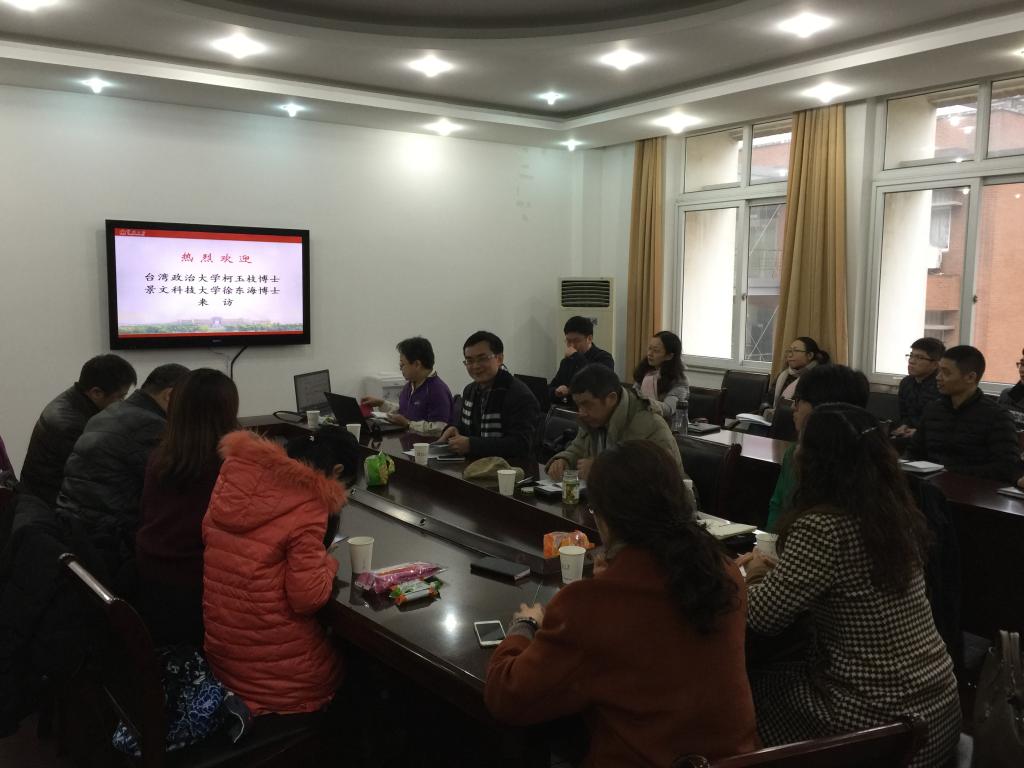 2016年1月10日下午14点,糖心视频 “科研下午茶”2016年第1期在11#412会议室如期举行。此次沙龙的主题:“一带一路”战略与海峡两岸经贸合作,主持人:国际经济与贸易系主任邓启明教授,主讲嘉宾:台湾政治大学柯玉枝教授、景文科技大学徐东海副教授。两位专家分别进行了题为《从ECFA、TPP与RECP看未来两岸关系发展与区域经济合作》和《台湾产业转型的契机与挑战:兼谈海峡两岸经贸合作的研究方法与体会》的精彩报告,并与在场师生进行自由交流与热烈互动。