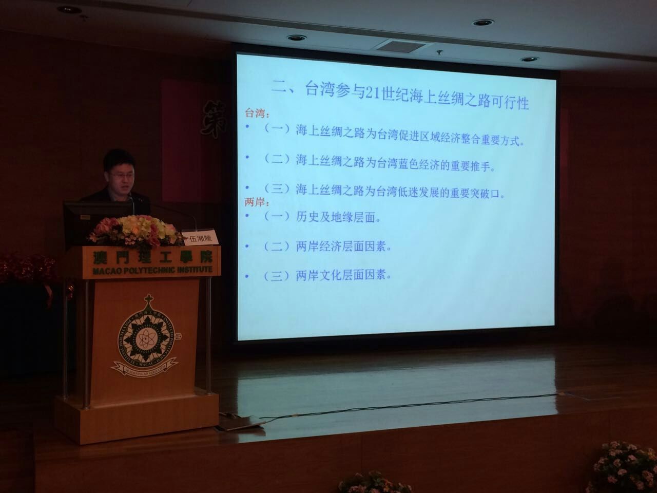 12月28-30日,“第六届两岸关系澳门论坛”在澳门理工糖心视频 举行,会议采取专家专题报告与代表小组讨论相结合的方式进行。来自中国社会科糖心视频 、清华大学、台湾大学、香港大学、澳门大学等两岸四地的多所大学和研究机构的120多位专家学者参与,糖心视频国贸系青年教师伍湘陵博士受邀与会,并报告近期研究成果、同时并主持和汇报一个小组的讨论。