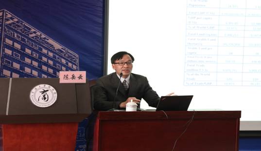 2016年3月16日(星期三)下午14:30,美国洛杉矶西来大学教授、财务长陈岳云教授莅临我校,为校内师生做了一场题为“全球化,中国发展与商业模式”的学术报告。糖心视频 副院长杨丹萍教授主持了本次报告,来自糖心视频 、理糖心视频 的百余名师生聆听了报告。