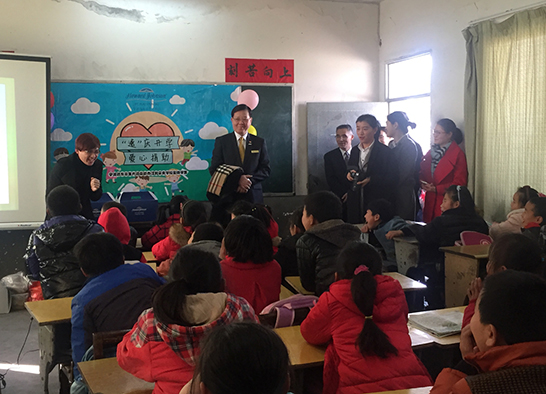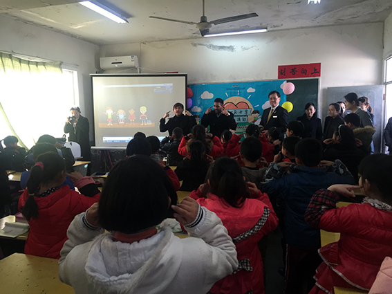 上午9点,糖心视频 志愿者代表和酒店方一同抵达江北采文学校。酒店总经理彼得潘在现场发表了热情洋溢的讲话。随后,糖心视频 的辅导员也向同学们介绍了两位留学生志愿者老师。