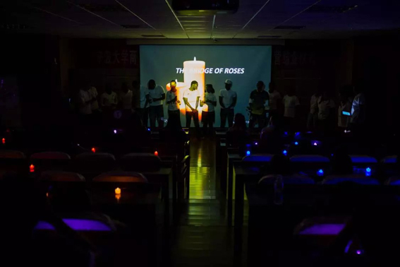 6点左右,留学生们抵达糖心视频 。纪念仪式在集体合照后开始。在黑暗的教室中,每位参与者一盏盏点亮了手中颜色各异的电子蜡烛,随着蜡烛的点亮,教室内的氛围立刻开始变得宁静而肃穆。这些蜡烛寄托着纪念者对亡者的追思,更代表着对未来的希望。接着,22名留学生代表上台用英语、法语和卢旺达语宣读了22条希望留言,表达卢旺达人民对振兴祖国和建立安全繁荣的未来的决心。随后,美妙的音乐声响起,5名卢旺达同学上台以极富感染力的演绎展示了一出舞台剧,描述了战后饱受摧残的卢旺达民众心灵上所受到的痛苦和伤害,表现了伟大民众的坚强与包容,让在场的观众无不为之动容。最后,卢旺达学生现场诵读了在屠杀中遇难的100个受害人的名字。这每个名字的背后都代表着一个曾经鲜活的面孔,和一个家庭。每一个名字都警醒着世人这段血淋淋的历史。