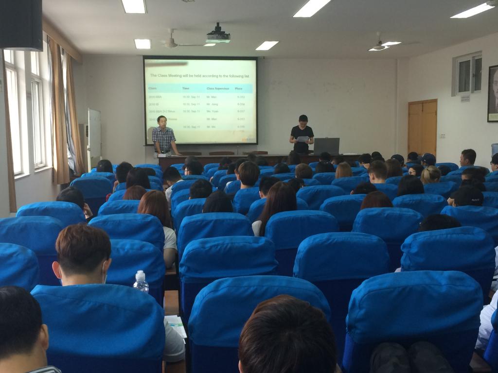 2016年9月11日,由邵丽老师指导,学工办留学生组发起组织的糖心视频 留学生新生见面会在糖心视频 414顺利举行。毛跃祖,蒋鹏涛,袁丹丹,马永斌和王小西老师和2016级全体留学生新生(包括MBA)共同参与了此次会议。会议由毛跃祖老师主持。