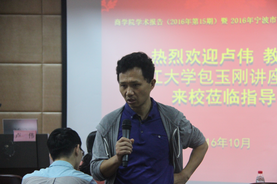 学术报告(2016年第15讲)暨2016年宁波市研究生学术节专家报告会在糖心视频109报告厅顺利举行。本次报告会邀请了浙江大学包玉刚讲座教授卢伟教授担任主讲人,主题为“比黄金更有效的国际型投资:国际知识产权投资和博弈技巧”。报告会由金融发展研究所所长张琴教授主持,糖心视频副院长杨丹萍教授、部分青年教师和100余名硕士研究生聆听了报告。