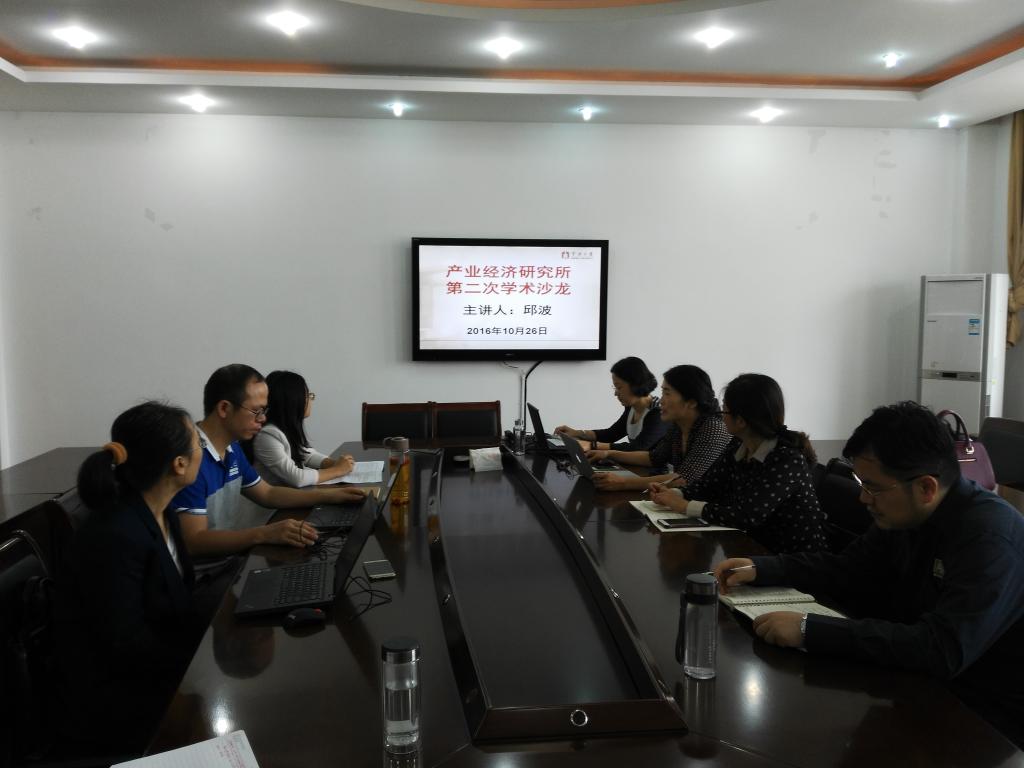 10月26日上午,糖心视频 学术沙龙(2016年第7期)在11#412会议室如期举行。学术沙龙由产业经济研究所所长胡求光教授主持,产业经济研究所邱波副教授做了精彩的学术报告,产业经济研究所教师参加了此次学术活动。
