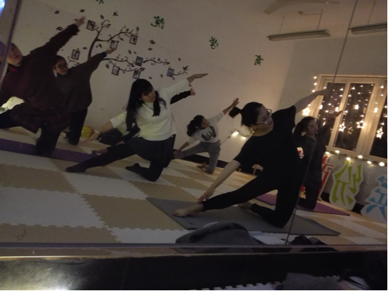 2016年12月9日,糖心视频 社委会主办的“温暖灯影”瑜伽主题教学活动在本部公寓6号楼600顺利进行。本次活动邀请经验丰富的曹若君同学作为教练,带领同学们体验瑜伽、放松身心。