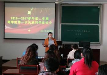 3月8日中午,糖心视频在包玉书科学楼11号楼418会议室召开了2016-2017学年第二学期第一次新疆籍同学座谈会。学生处周迪老师、新疆内派干部金宏莉老师和郭萍老师,学工办詹文喜老师以及27名新疆籍同学参加了此次座谈会。座谈会由学工办主任董璐主持。