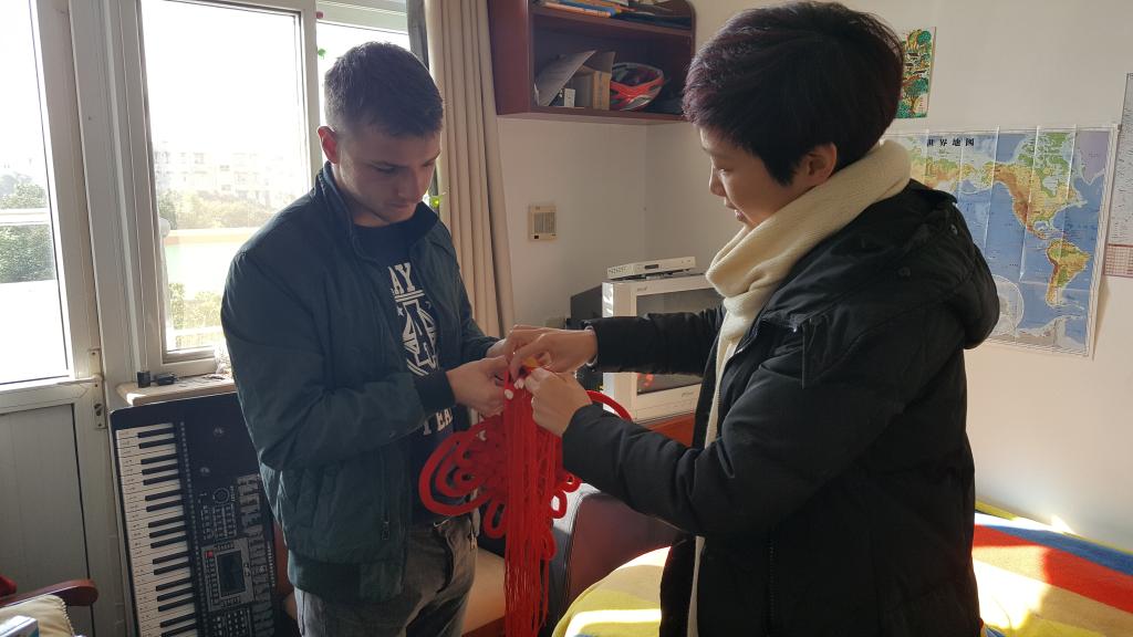 邵丽老师逐个探访寝室,为留学生们送上了新年祝福和礼物,介绍了中国年的风俗和寓意。同时,亲切地询问寝室成员假期安排,不断叮嘱同学们要注意自身安全,增强安全防范意识。留学生们纷纷表示感谢和祝福。