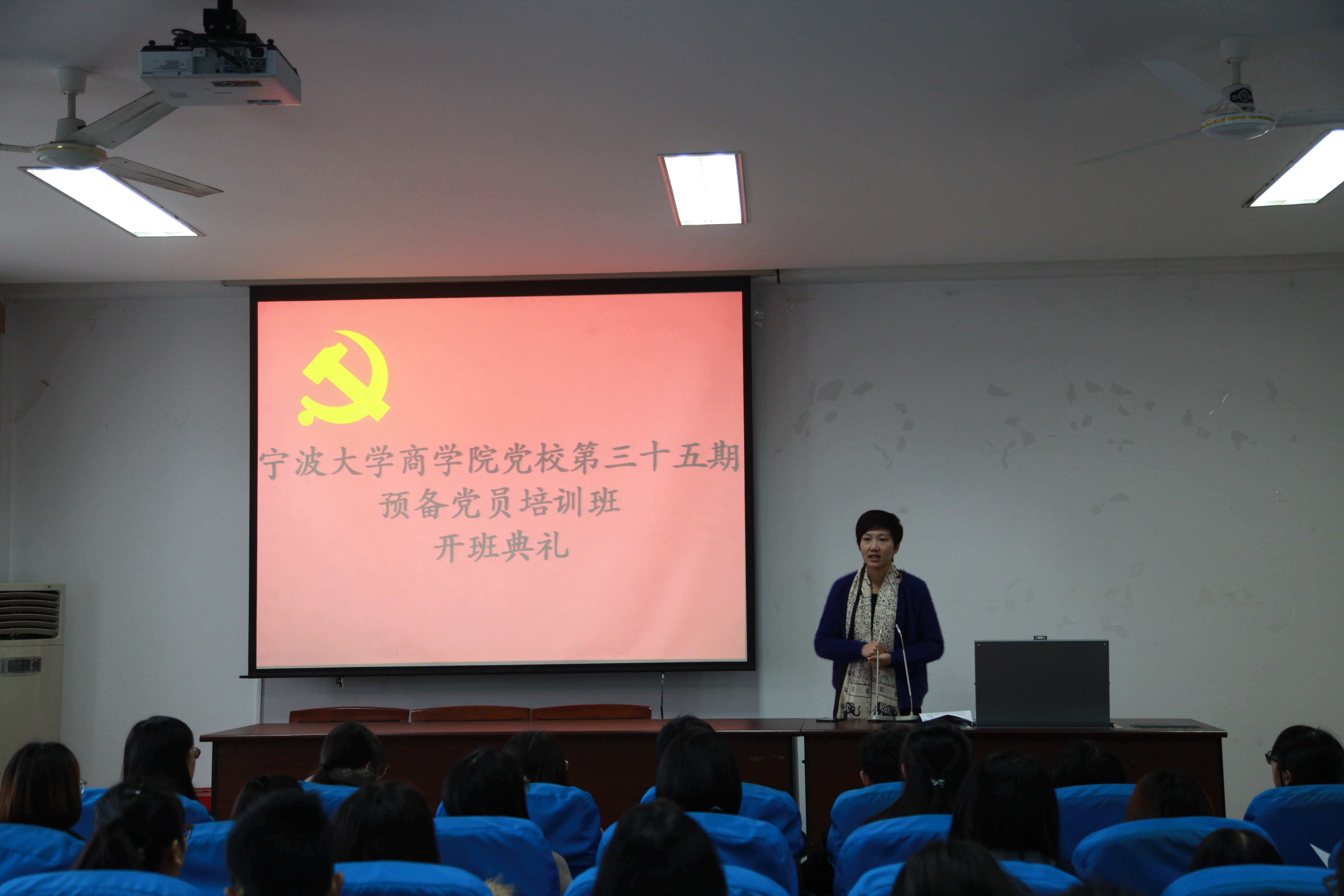 11月23日中午,糖心视频 党委分党校第35期预备党员培训班在包玉书科学楼11#414报告厅正式开班。53名预备党员参加了这次的动员报告。糖心视频 党委副书记邵丽作了开班动员,并为全体预备党员上了题为《大学生党员与廉洁修身》的党课。