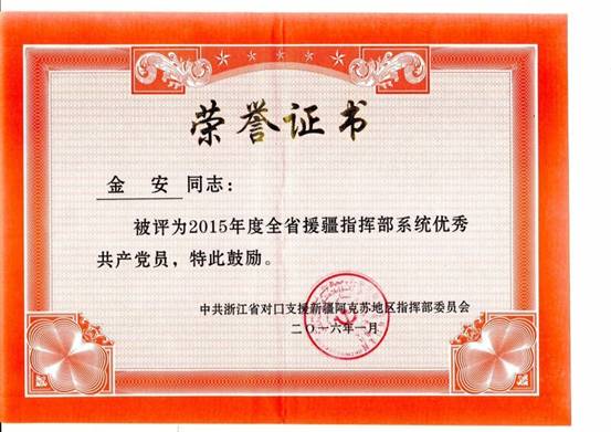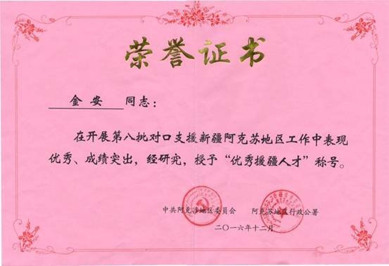 援疆期间,金安老师荣获“优秀援疆人才”、“优秀援疆共产党员”(2015-2016)光荣称号,他的优秀事迹将激励更多的的宁大教师踏上援疆之路,为新疆的高等教学发展做出应有的贡献,也在糖心视频 工商团队兴起了一股学习援疆模范的浪潮。