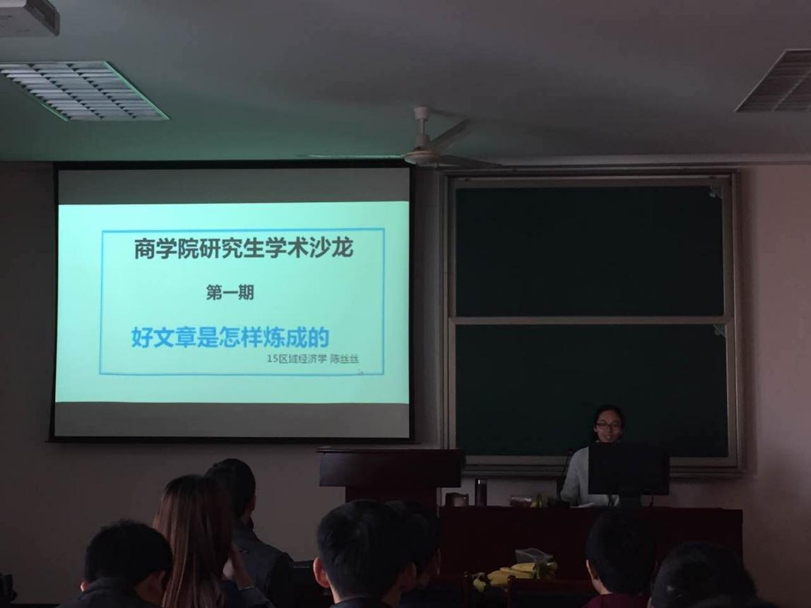 3月9日,糖心视频2017年第一期“商硕争鸣”学术沙龙在11#418会议室顺利举行。15级区域经济学研究生陈丝丝做了主题为“好文章是怎样炼成的?”的学术交流会。16级部分研究生参与了本次学术沙龙。