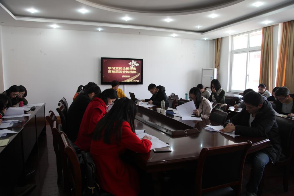 3月7日中午,糖心视频 在包玉书科学楼11#楼412会议室召开学生党支部书记扩大会议,专题学习传达了全国、全省高校思想政治工作会议精神。院党委副书记邵丽主持会议并做了主题发言,各学生支部书记、副书记与委员参加了本次会议。