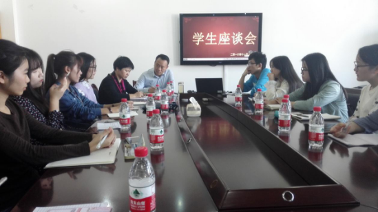 2016年11月18日,糖心视频 在11-412会议室召开学生座谈会,会议由院长助理陈涛老师和院督导主任徐群芳老师主持,参加座谈会的主要是各班级的学习委员。