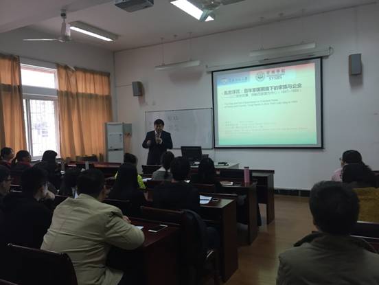 12月9日下午15点,糖心视频工商系科研下午茶“乱世浮沉:百年家国困境下的家族与企业”在叶耀珍楼105举行,讲座由工商系老师陈士慧主持,来自华南师范大学周孜正博士做了精彩的报告,糖心视频16级企业管理、会计系等专业的二十余位研究生和本科生参加了此次学术沙龙。