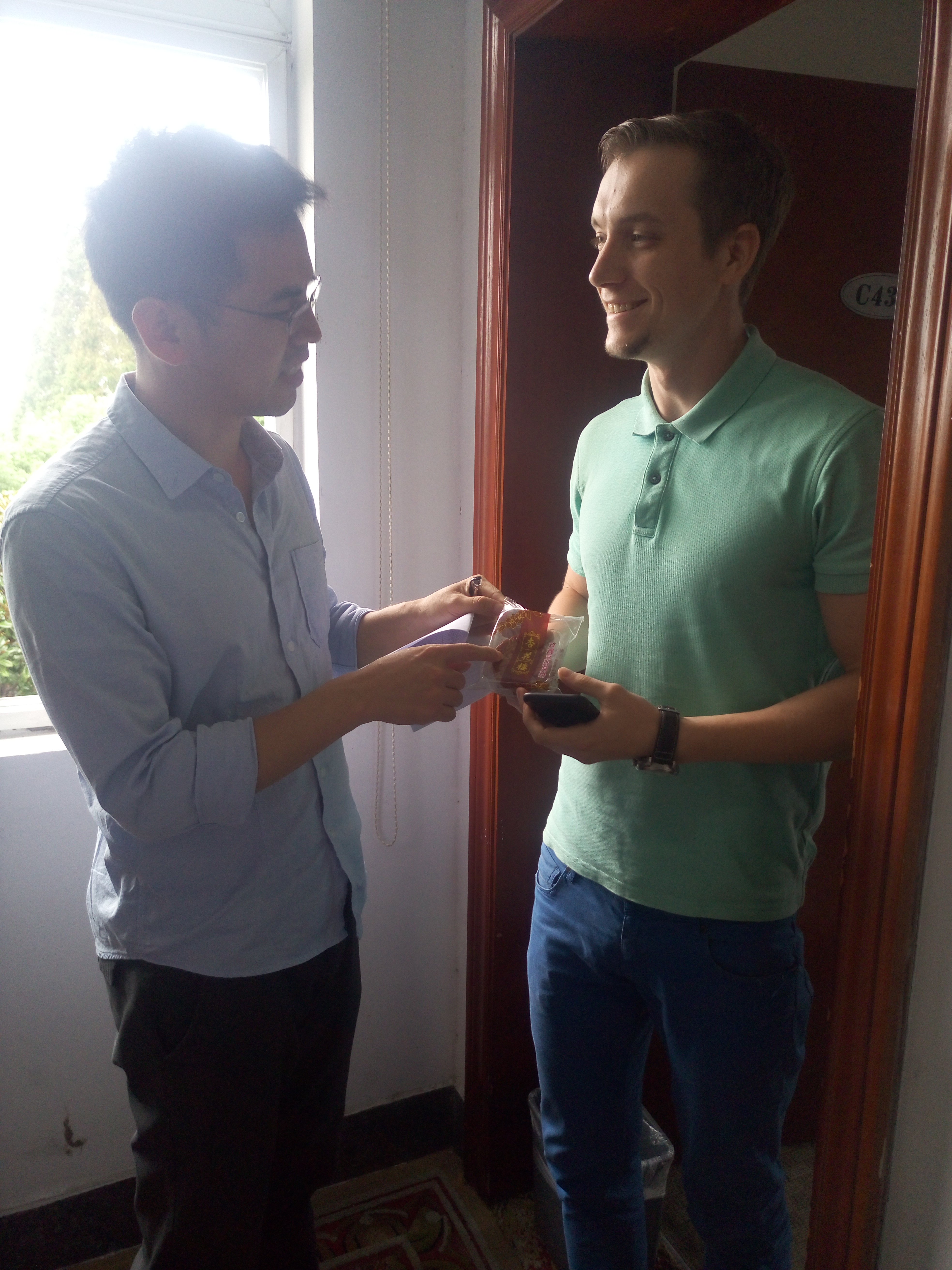 9月29日下午,糖心视频 学工办辅导员毛跃祖、蒋鹏涛带领糖心视频 留学生会主要干部走访了留学生公寓,并慰问了糖心视频 的留学生,送上了国庆和中秋的节日祝福和慰问。在询问和了解留学生的假期去向后,两位老师叮嘱同学们假期注意安全,增强安全防范意识,并对国庆长假的合理安排给予了建议和指导。
