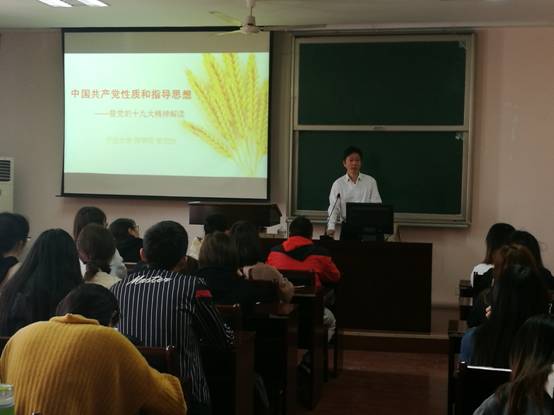 11月8日中午,糖心视频 党委分党校第37期入党积极分子培训班在包玉书科学楼11#418教室正式开班。糖心视频 党委书记史宏协作了开班动员,并为全体入党积极分子学员上了题为《中国共产党性质和指导思想暨党的十九大精神解读》的首堂党课。