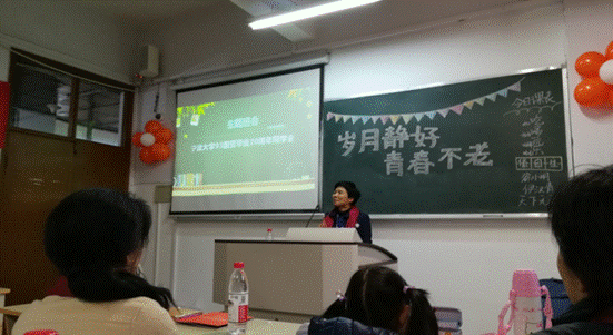 下午,同学们身披红围巾和佩戴纪念徽章整齐的坐在昔日的教室里,13点30分同学会正式开始。时隔二十年后再一次以班会形式聚集在一起,重温青春影集,重拾往日记忆,大学期间亲切而温暖的情谊又渐渐浮上心头。