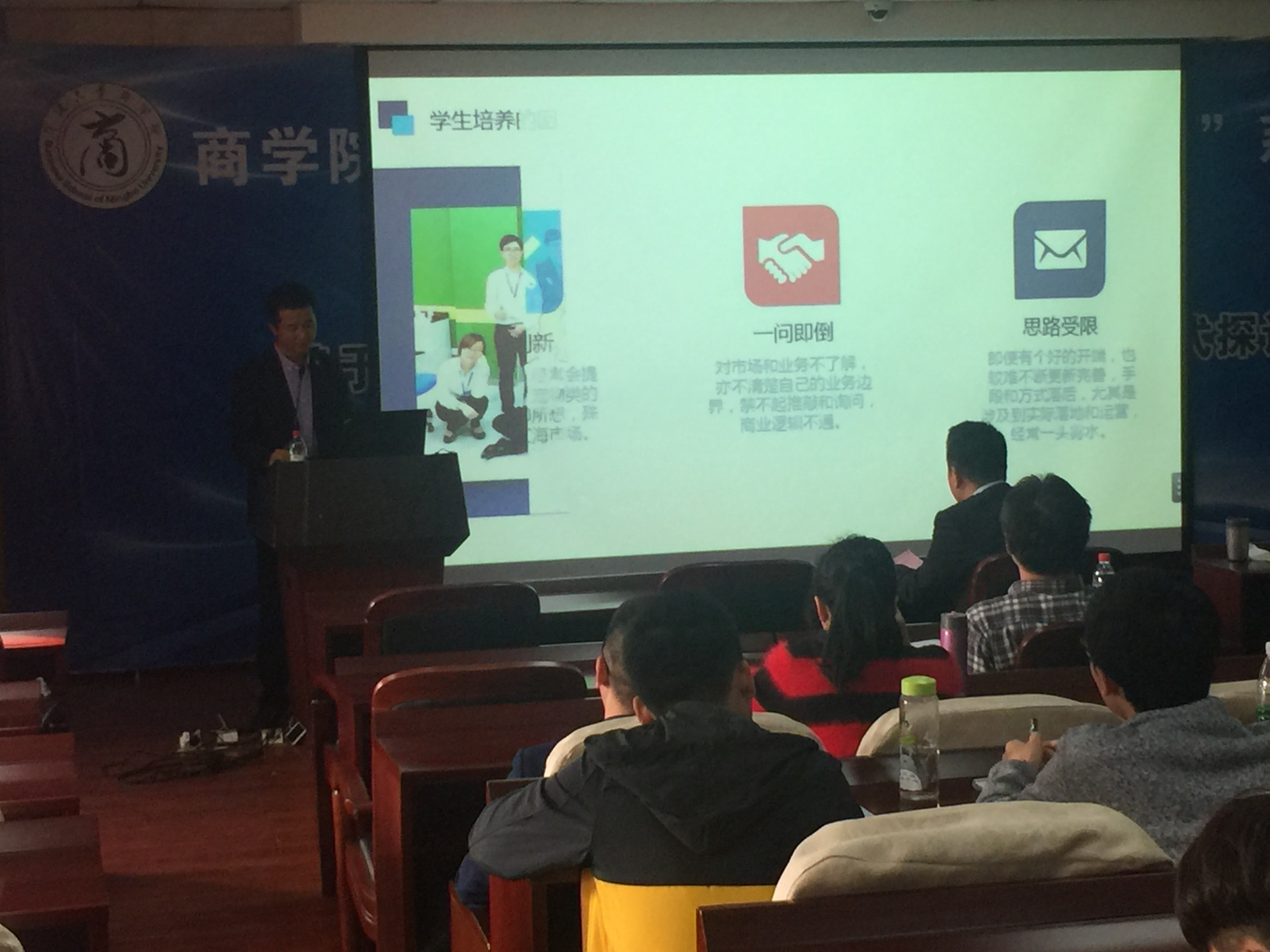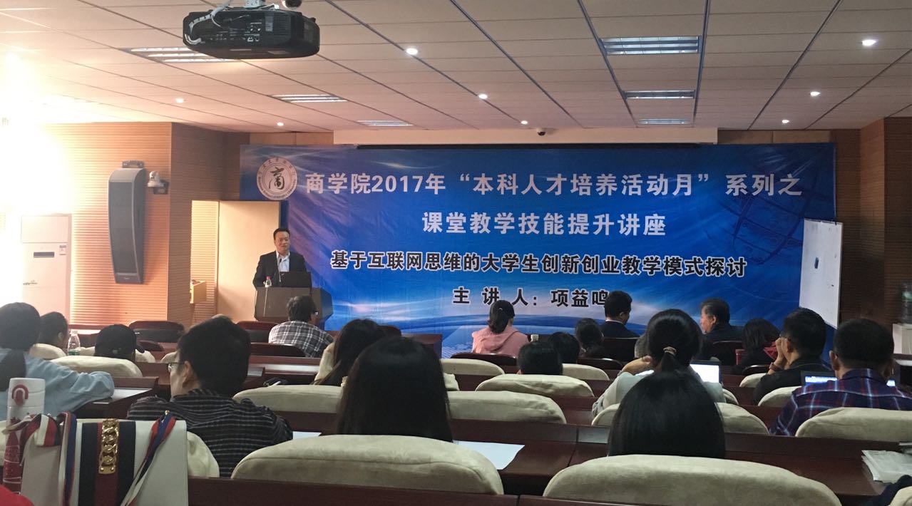 2017年11月8日下午14点,糖心视频 邀请浙江工商大学管理工程与电子商务糖心视频 副教授,硕士生导师,互联网与商业创业系主任兼信息管理系主任项益鸣老师在糖心视频 109教室给广大教师做了《基于互联网思维的大学生创新创业教学模式探讨》专题讲座。目的是为了提升糖心视频教师课堂教学技能及如何能有效的做好学科竞赛指导,提高学生的综合竞争实力。