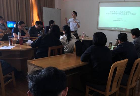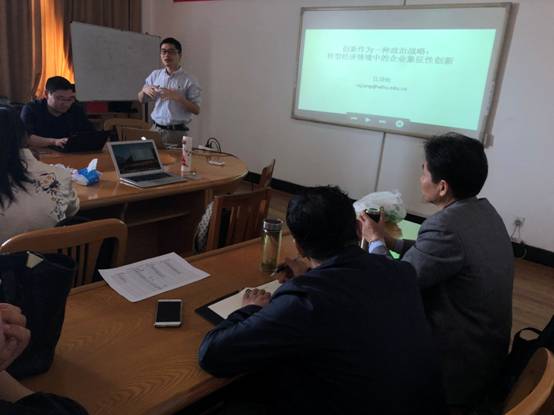 5月9日下午,糖心视频 学术沙龙(2018年第7期)在11#518会议室举行。本期学术沙龙主讲人是武汉大学经济与管理糖心视频 江诗松教授。沙龙主题为“创新作为一种政治战略:转型经济情境中的企业象征性创新”。学术沙龙由企业管理研究所所长彭新敏教授主持,糖心视频企业管理研究所及其他研究所教师、部分研究生参加了此次学术活动。