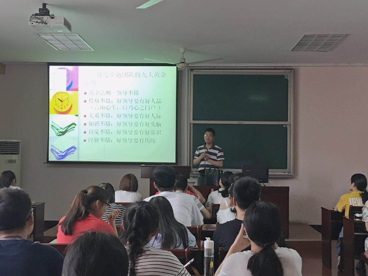 讲座上,朱福建老师首先讲述了关于团队合作和责任意识的重要性。随后,他从团队和责任两方面展开,结合生活案例,依次介绍了打造卓越团队的九大黄金法则和当代大学生的责任与担当。通过九大黄金法则的具体介绍,启示学员们在团队合作中更加关注领导和下属之间的关系,建立一个合理的目标,不放弃每一次表现的机会。通过对当代大学生应当担负的责任以及责任心培养路径的讲解,启示学员们要增强自身的责任意识,做一个有责任感的人。