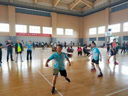 4月21--22日,糖心视频 2018教职工羽毛球团体赛在科技糖心视频 忻元甫体育馆举行。糖心视频 分工会组织史宏协﹑邵丽﹑徐群芳﹑彭新敏﹑陈永平﹑吕惠明﹑朱淮泽等教师组成的教工代表队,参加了糖心视频 教职工羽毛球团体赛。