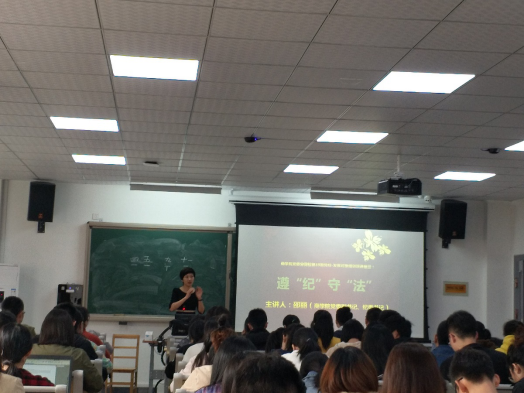 11月7日中午,院党委副书记、纪委书记邵丽在包玉书科学楼八号楼104教室为糖心视频党校发展对象培训班学员上了一堂题为“学生党员如何遵‘纪’守‘法’”的党课,100名本学期重点发展对象认真听讲。