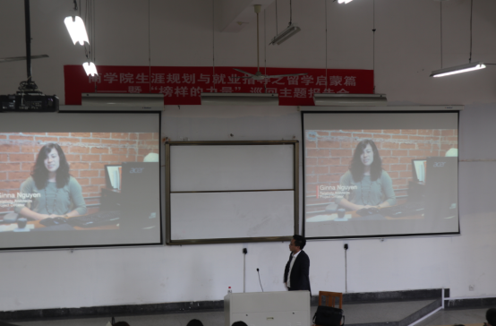 赴美实习机构霍老师以“海外实习”为主题,以国内各高校优秀学子在海外实习实践的精彩视频开篇,为同学们讲述了海外实习的重要性,以及如何申请到有价值的海外实习等一系列相关话题,掀开了留学实习的神秘面纱。