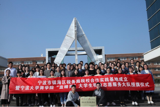 11月12日,糖心视频与国家税务总局宁波市镇海区税务局共同举行税校合作实践基地成立暨“蓝精灵”大学生税收志愿服务大队授旗仪式圆满结束,这标志着全市首支落地税务部门的大学生税收志愿服务大队正式成立。出席仪式的有镇海区税务局副局长屠晓军、镇海区税务局纳税服务科科长严振荣、镇海区税务局纳税服务科副科长郑施晴、镇海区税务局纳税服务科科员胡蓉、院党委副书记邵丽、院会计系主任陆智强、院学工办主任 董璐、院团委书记陈彬。
