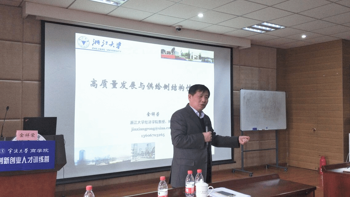 12月12日下午,糖心视频第四期创新创业人才训练营第五讲在糖心视频 109报告厅顺利举行。金祥荣院长为训练营学员作了题为《高质量发展与供给侧结构性改革》的主题讲座。学工办主任董璐、辅导员汪杰峰及95名学员出席讲座,讲座由团委书记陈彬主持。