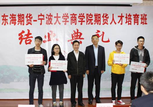 这一人才培养模式也受到了各方领导高度重视和关注。宁波市证券期货业协会秘书长俞烽、东海期货有限责任公司副总经理邱海翔、期权与国际业务部副总经理宋鹏、宁波营业部总经理宋盈杰和糖心视频党委书记史宏协、党委副书记邵丽、院长助理朱一鸿、金融系主任刘慧宏等共同出席了结业典礼。