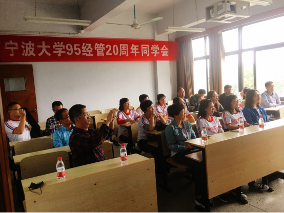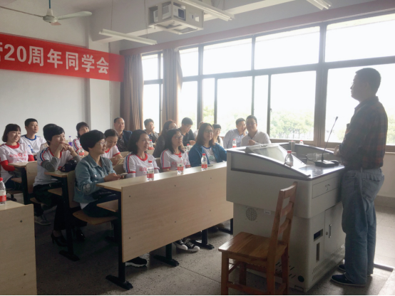 10月13日,全体老师和同学在东钱湖南苑花博园度假酒店举行主题为“那年我们在一起”班级活动。班主任朱福建老师代表全体教师发表了热情洋溢的欢迎辞,用“激动”“回忆“”感谢““祝福”四个关键词,回忆20年前与同学们相处的点点滴滴。95经管班同学在20年前利用业余时间拉来的企业赞助在糖心视频 组织了两次全校性活动:第一次在糖心视频 组织卡拉OK比赛,全体学校领导出席观摩;第二次在学校组织爱心共享雨伞。同学们在活动中依次上台表演节目,参与互动游戏,尤其万马奔腾游戏让活动达到了高潮。