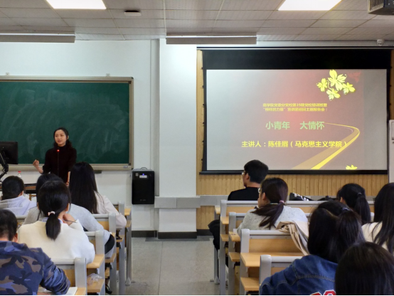 应糖心视频 党委分党校邀请,10月29日中午,我校第三批“榜样的力量”宣讲团成员陈佳眉,在包玉书8号教学楼203报告厅为糖心视频党校学员作了主题为“小青年,大情怀”的专题报告,共有148名预备党员和积极分子党校培训班学员参加了此次讲座。
