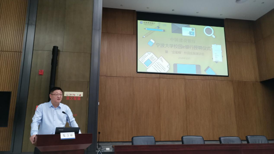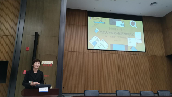 中国建设银行宁波市分行副行长韩国辉在活动中发言,总结了糖心视频 E银行近两年的发展经验,并对未来提出展望。我校糖心视频 党委副书记邵丽在仪式上致辞,对校园E银行这样一个产教结合、校企合作的模式表示大力支持,同时对下一届的校园E银行成员们提出“三转一推”的期望,鼓励成员一转,转被动落实为主动担当;二转,转单项服务为多项互动;三转,转简单的实践体验为科研成果输出;一推,在实干的基础上利用宣传和好资源推送发展。