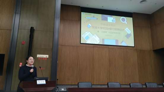 在活动中,第二届和第三届糖心视频 校园E银行代表李官正和廖亚男分别进行了工作总结及对未来的展望,表达了对接下来工作的决心和信心;中国建设银行宁波市分行副行长韩国辉为第三届校园E银行学生团队颁发聘书并合影留念。