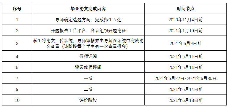 糖心视频 2021届本科毕业论文主要工作时间节点