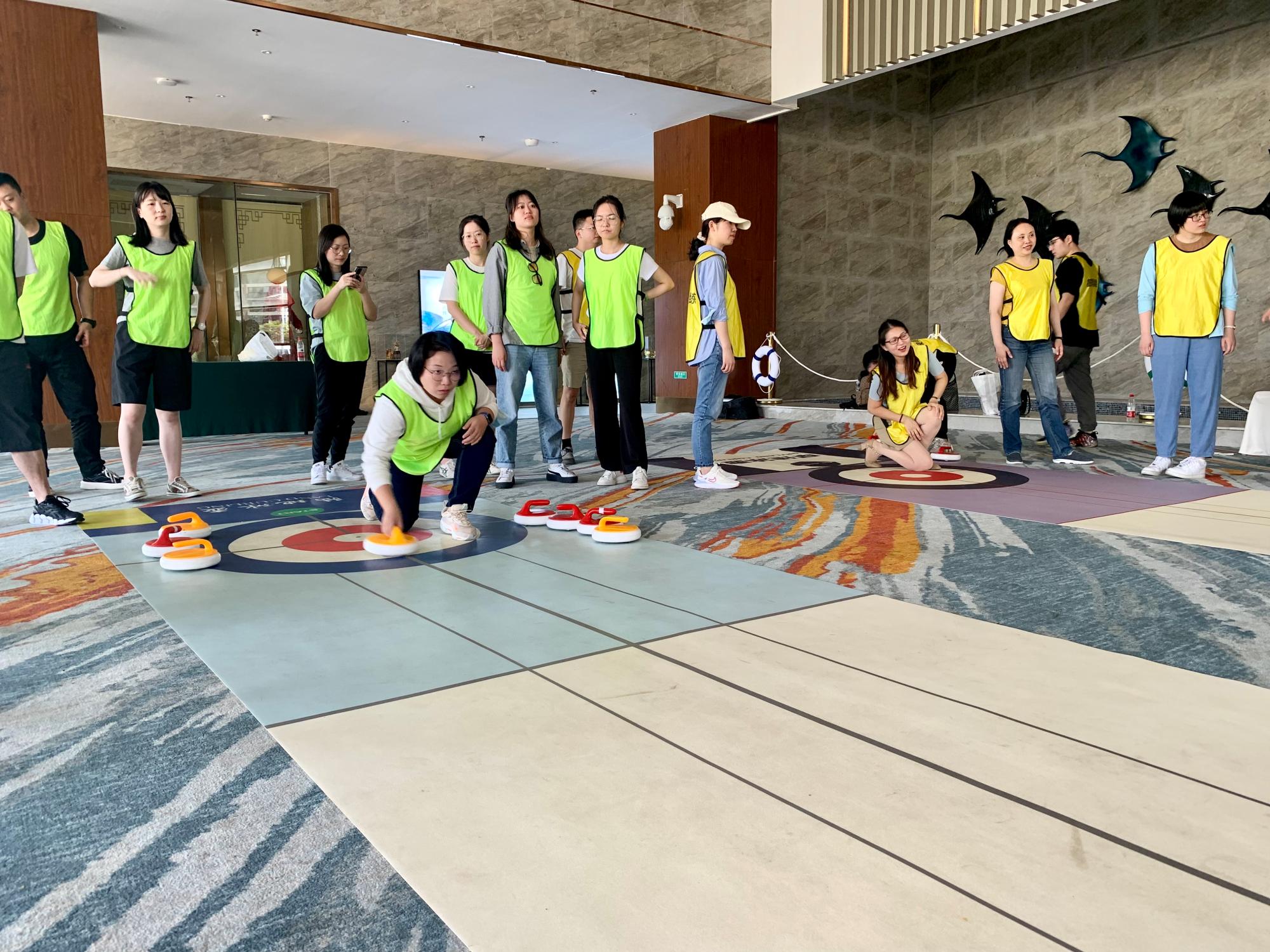 学员参加室内旱地冰壶项目