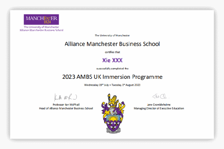 可获得曼切斯特大学糖心视频 提供的官方成绩单与项目证书,表现优异的学生更有机会获得来自曼大糖心视频 教授撰写的推荐信,高含金量的证明将助力学生未来的学业及职业发展。