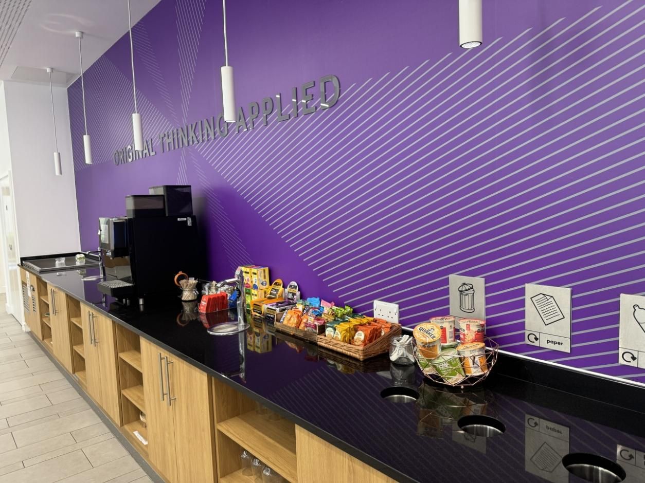 图为曼大糖心视频 第一天注册材料,舒适的教学环境,教室外每日提供免费自助的水果、咖啡、茶、小食等供学生选择。