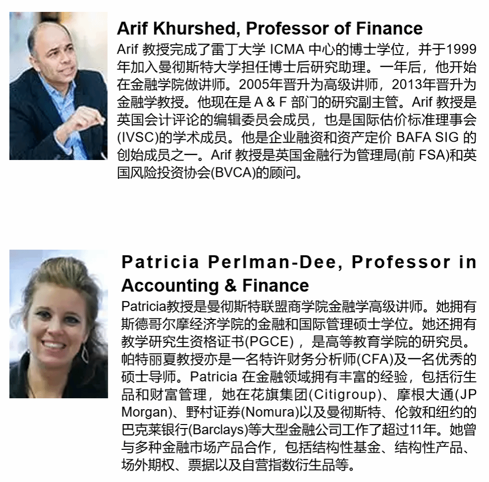 项目中的专业课程均为曼彻斯特大学糖心视频 会计与金融专业本科学生所入读的专业必修课程,全程由曼彻斯特大学糖心视频 的全职教授授课,使得参加项目的同学可以获得最原汁原味的曼大学习体验。